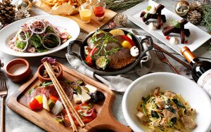 乾杯酒はノンアルコールに変更も可能です。メゼ盛りとは、私たちレストランのコンセプトの中東料理である軽食の一種です。